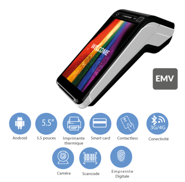Terminal qui permet de transformer un mobile ou une tablette en terminal de paiement sécurisé conforme aux standards internationaux.